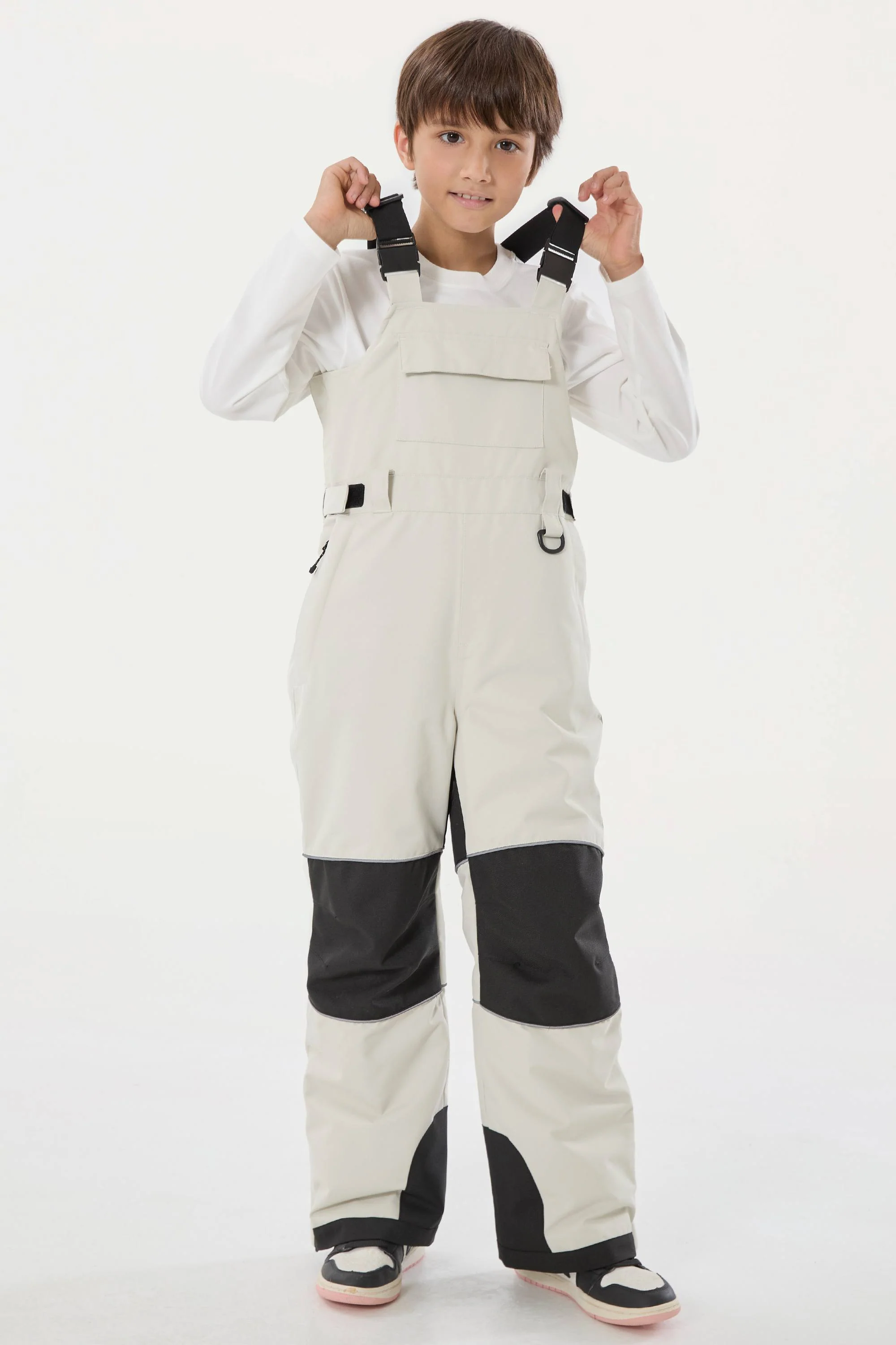 Boys’ Off White Reflective Durable Workwear Snow Bibs
