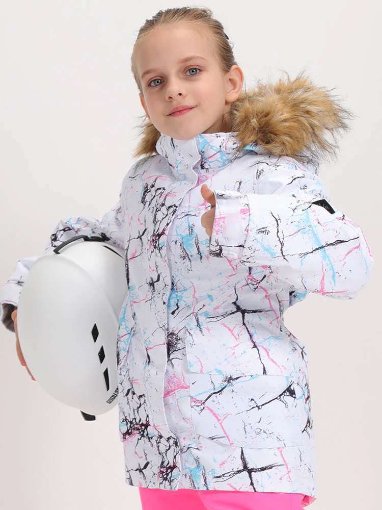 Gsou Snow Kid's Colorful Vibrant Lines Winter Snowboard Jacket