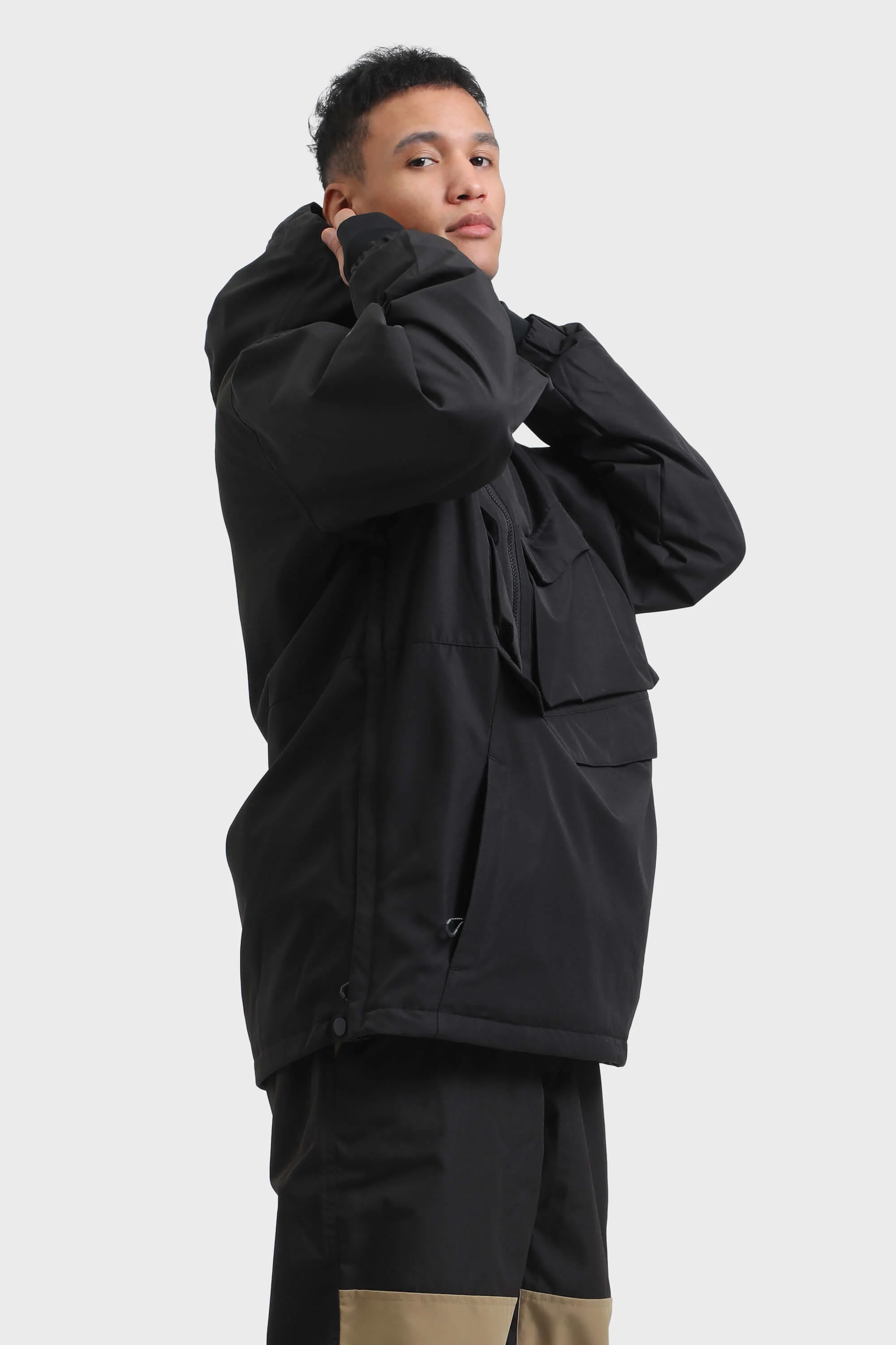 Men's Black Asymmetrical Kangaroo Pocket Waterproof Insulated Snow Anoraks