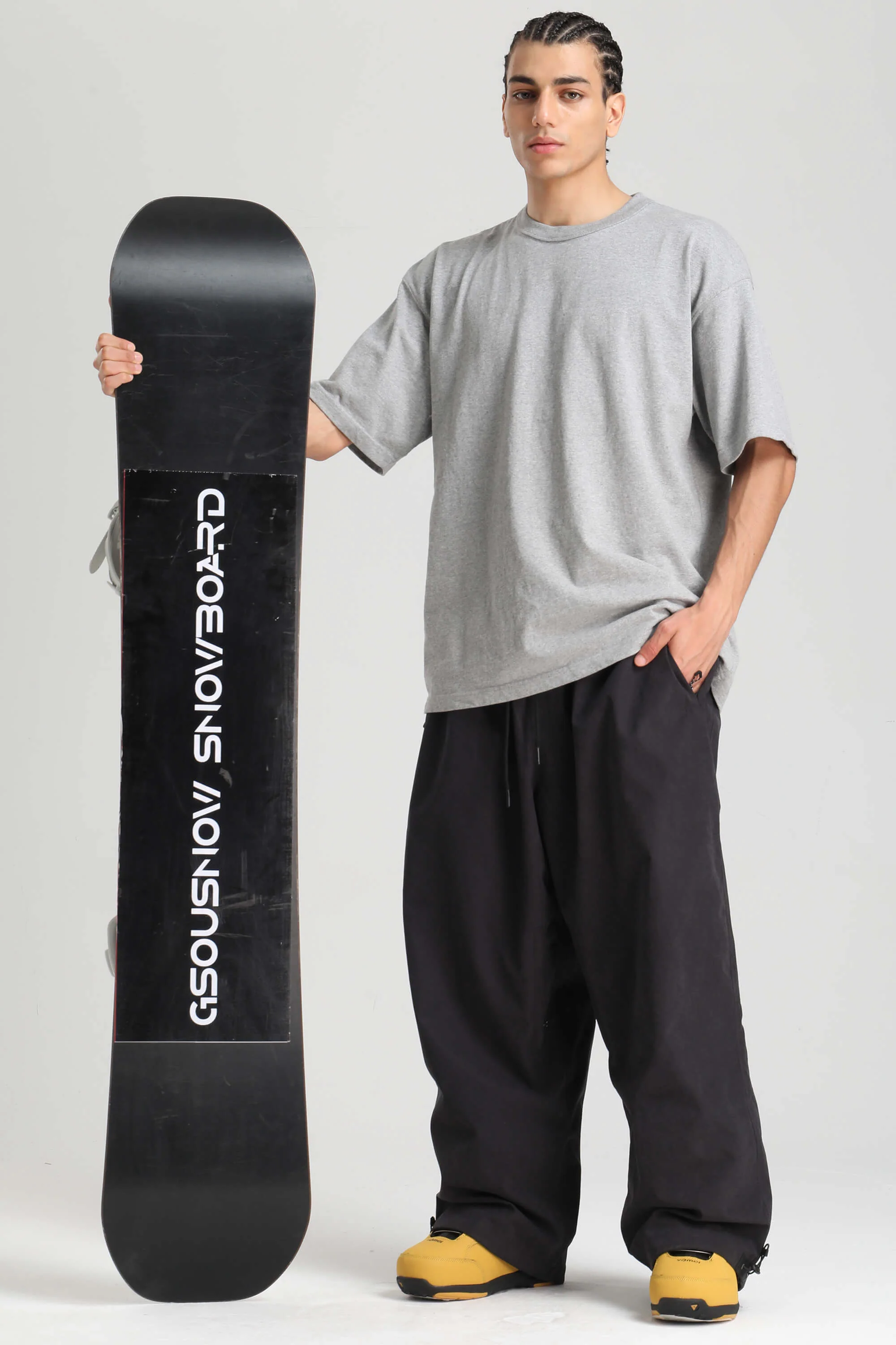 Men's Black Baggy Soft Brushed Retro Snow Pants