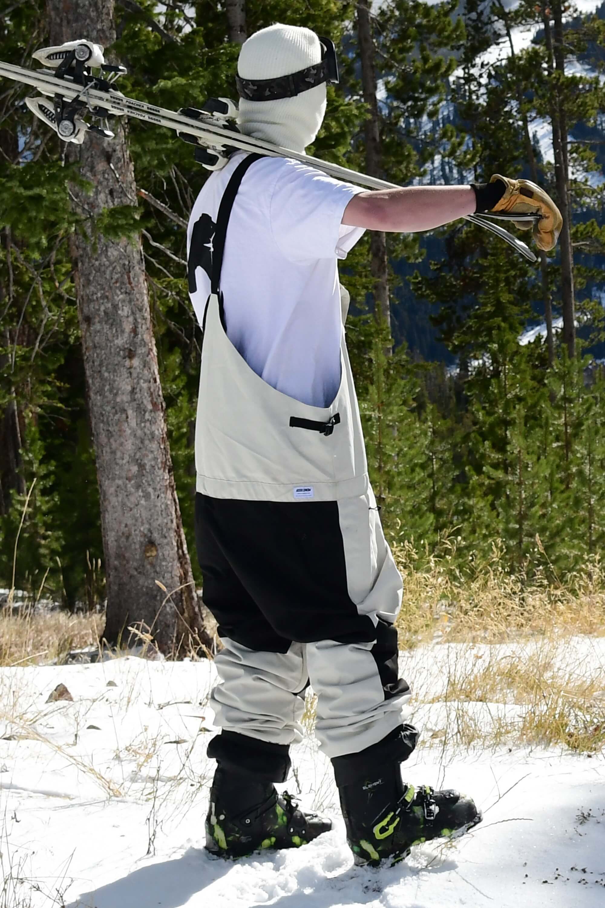 Men's White Full Front Zip Snow Bibs with Hook & Loop Closure