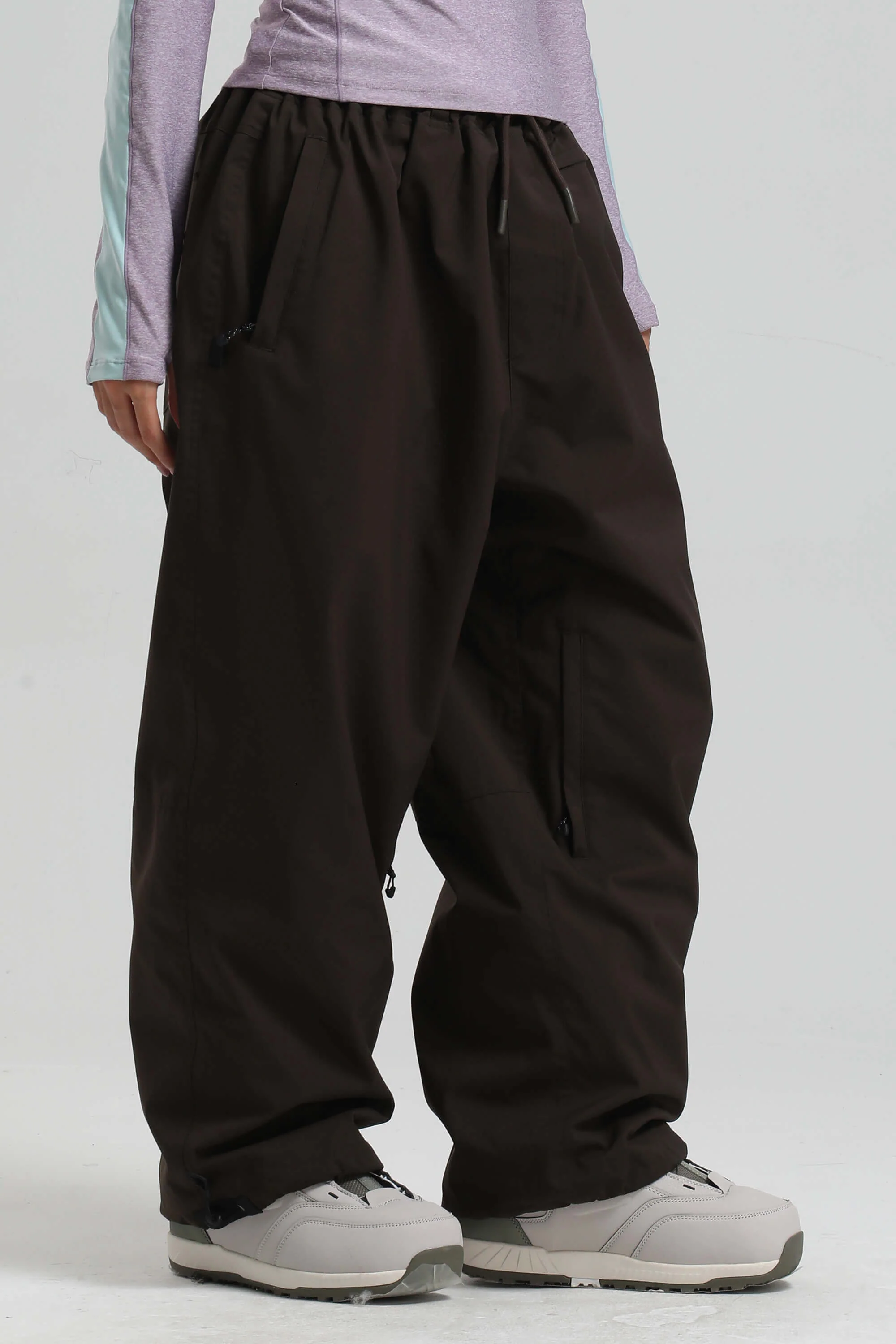 Women's Coffee Baggy Drawstring Durable Snow Pants