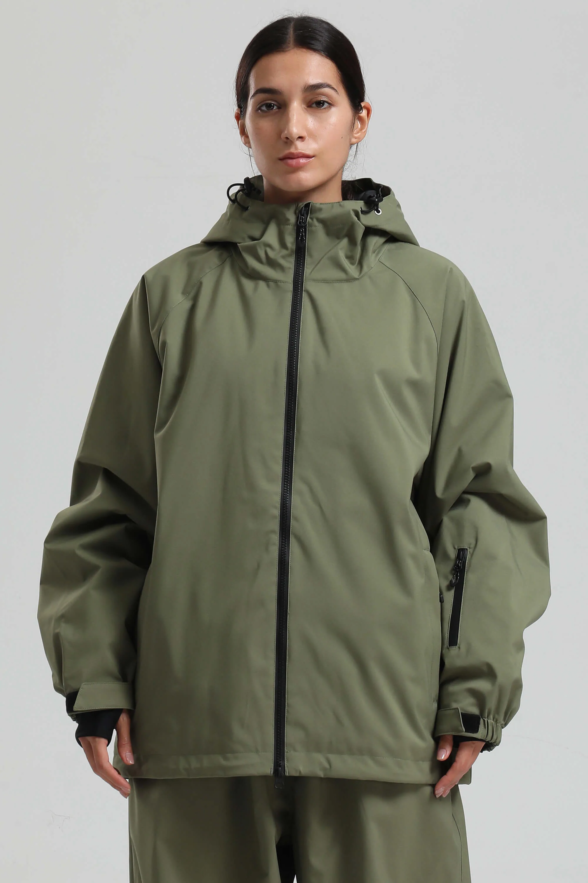 Women's Army Green Dual-Vent Minimalist Waterproof Insulated Snow Jacket