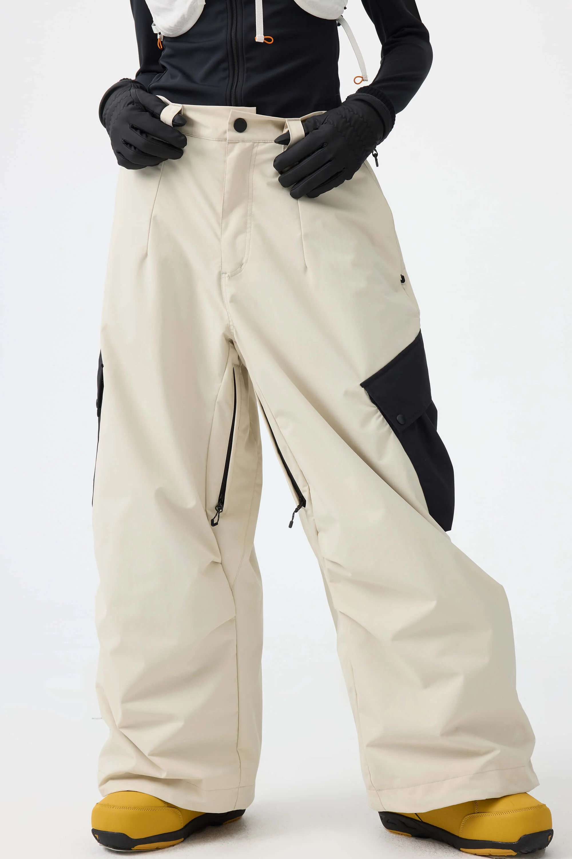 Waterproof and breathable, these pants are designed for skiing and snowboarding. Featuring zippered vents on the inside thigh to quickly release excess heat, they provide both comfort and performance. The simple solid color design with contrast color-blocked pockets offers a minimalist yet stylish look, making them a popular choice.