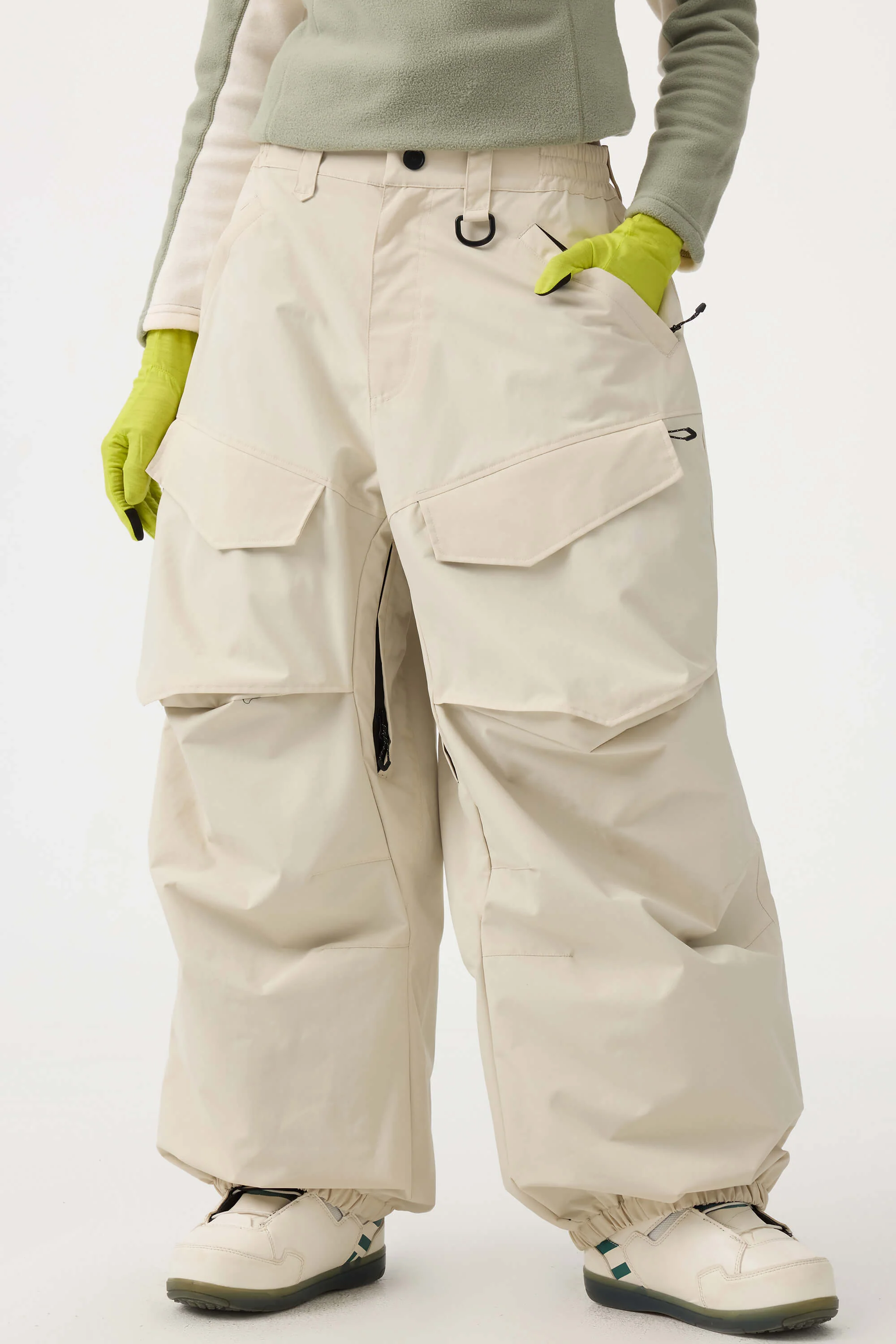 Women's Beige Baggy Utility Wear-resistant Snow Pants