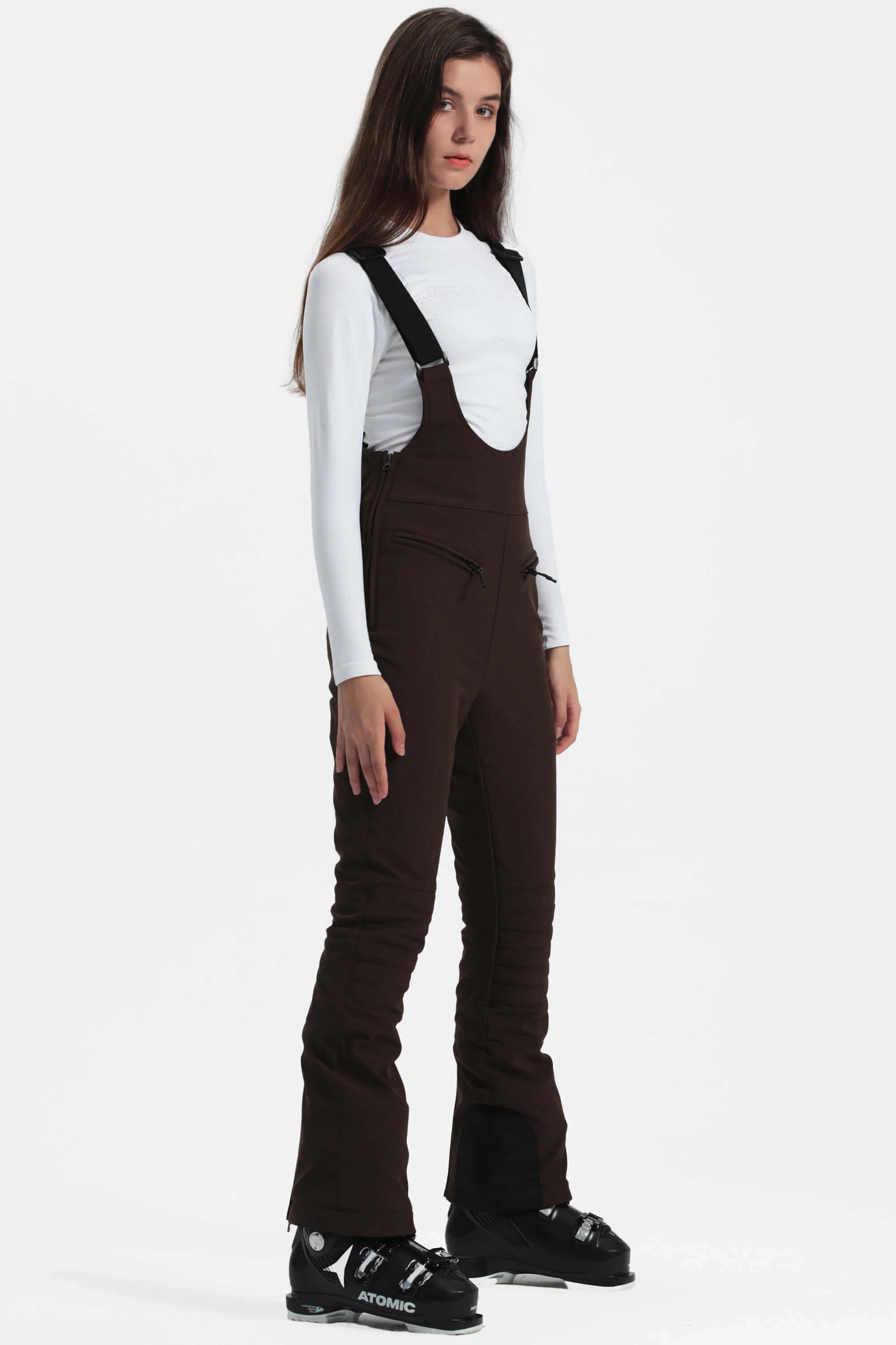 Women's Brown Slim-Fit Stretch Fleece-Lined Ski Bibs