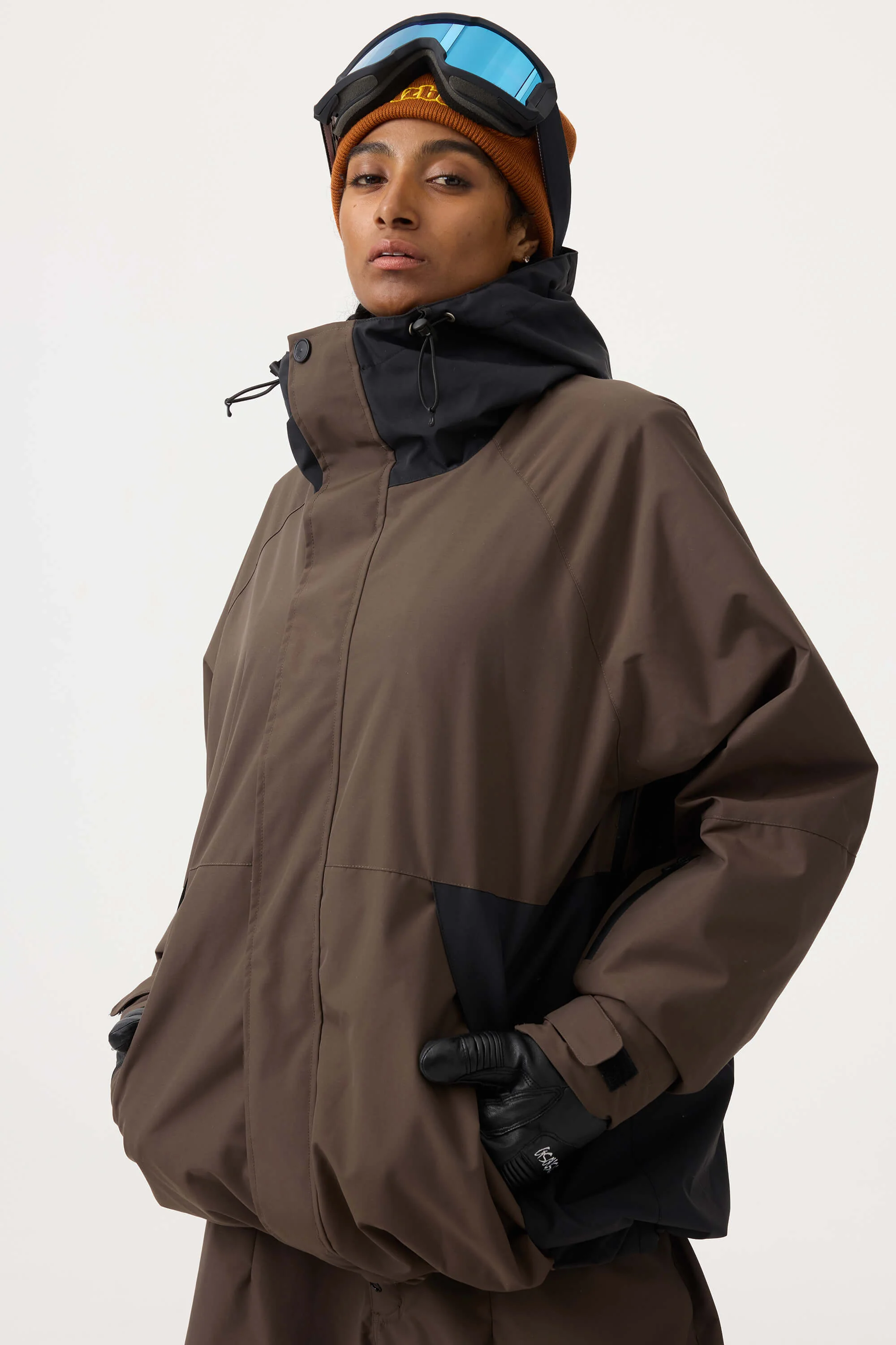 Women's Coffee Raglan Sleeve Color Block Waterproof Breathable Snow Jacket