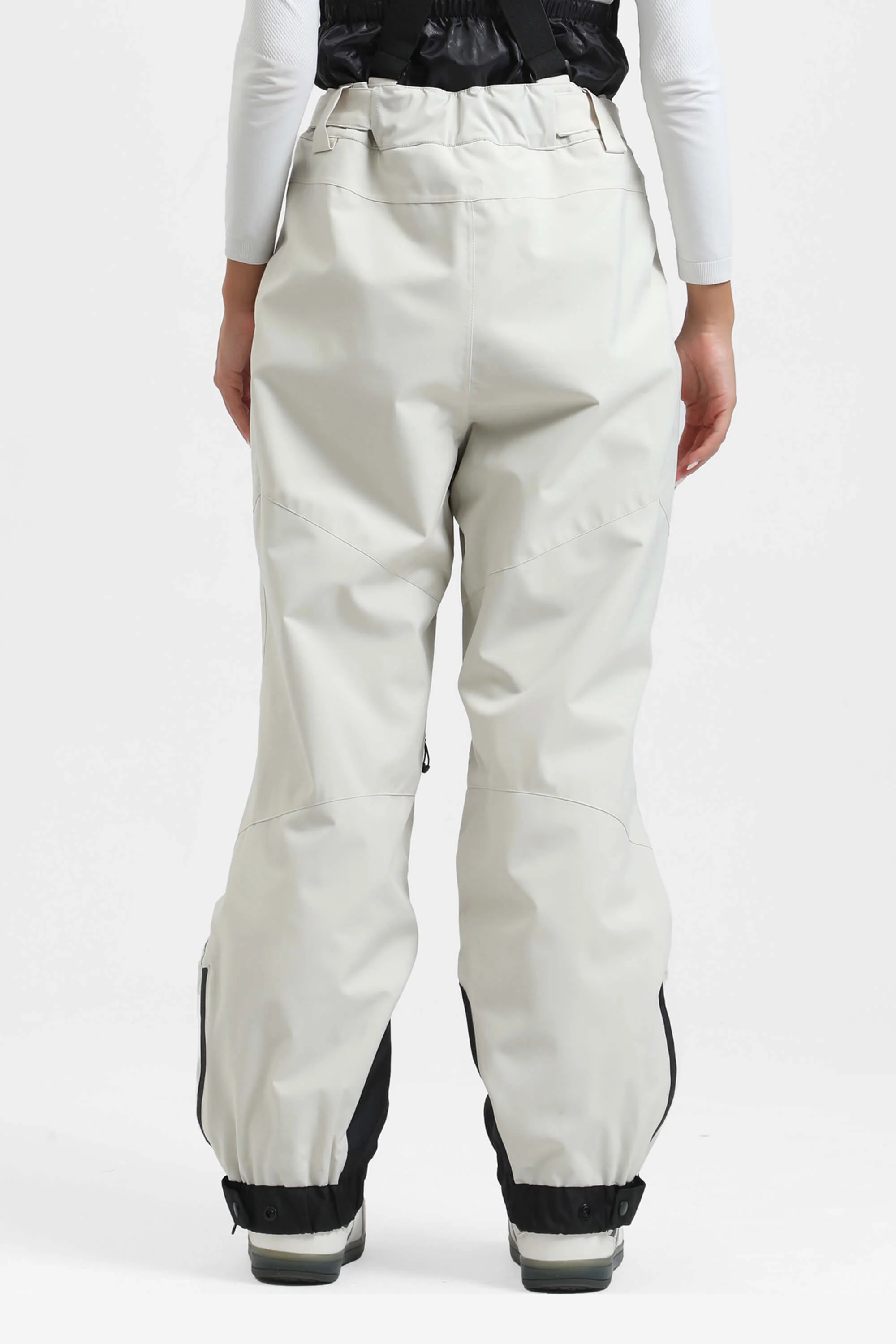 Women's Off White Insulated Baggy Snow Pants With Detachable Suspenders