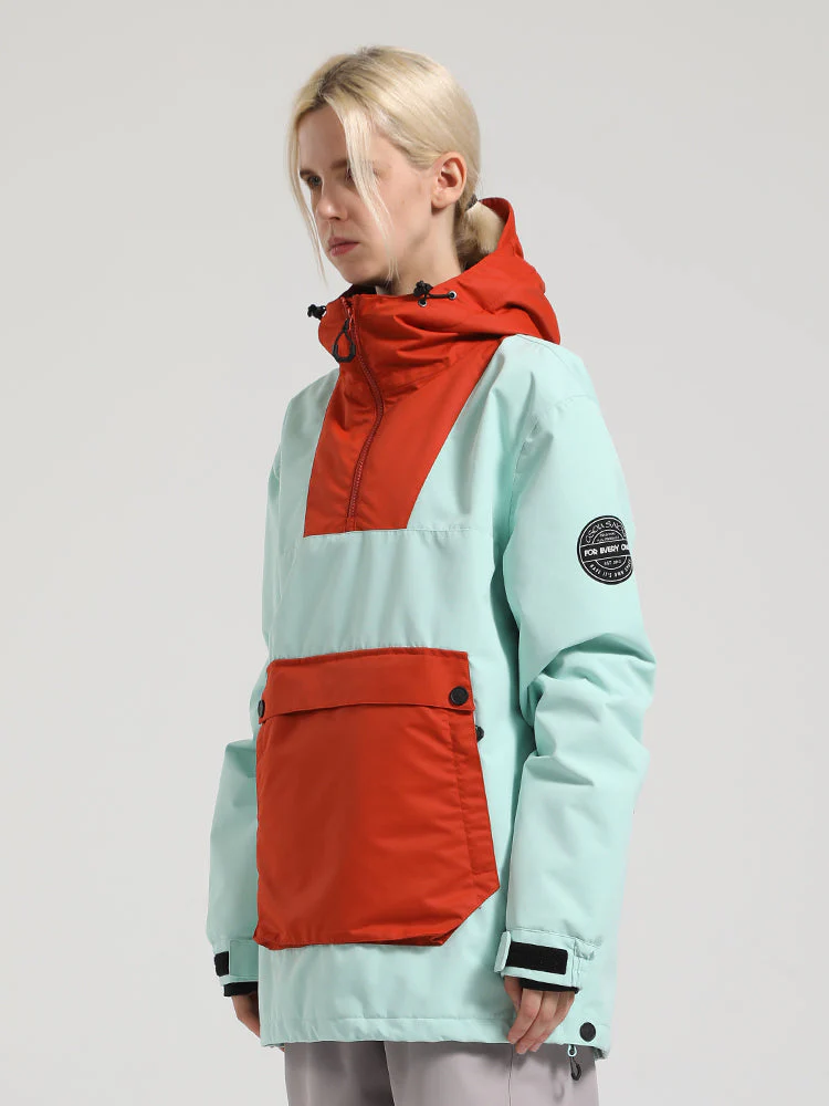 Women's Red & Teal Patchwork Kangaroo Pocket Snow Anoraks